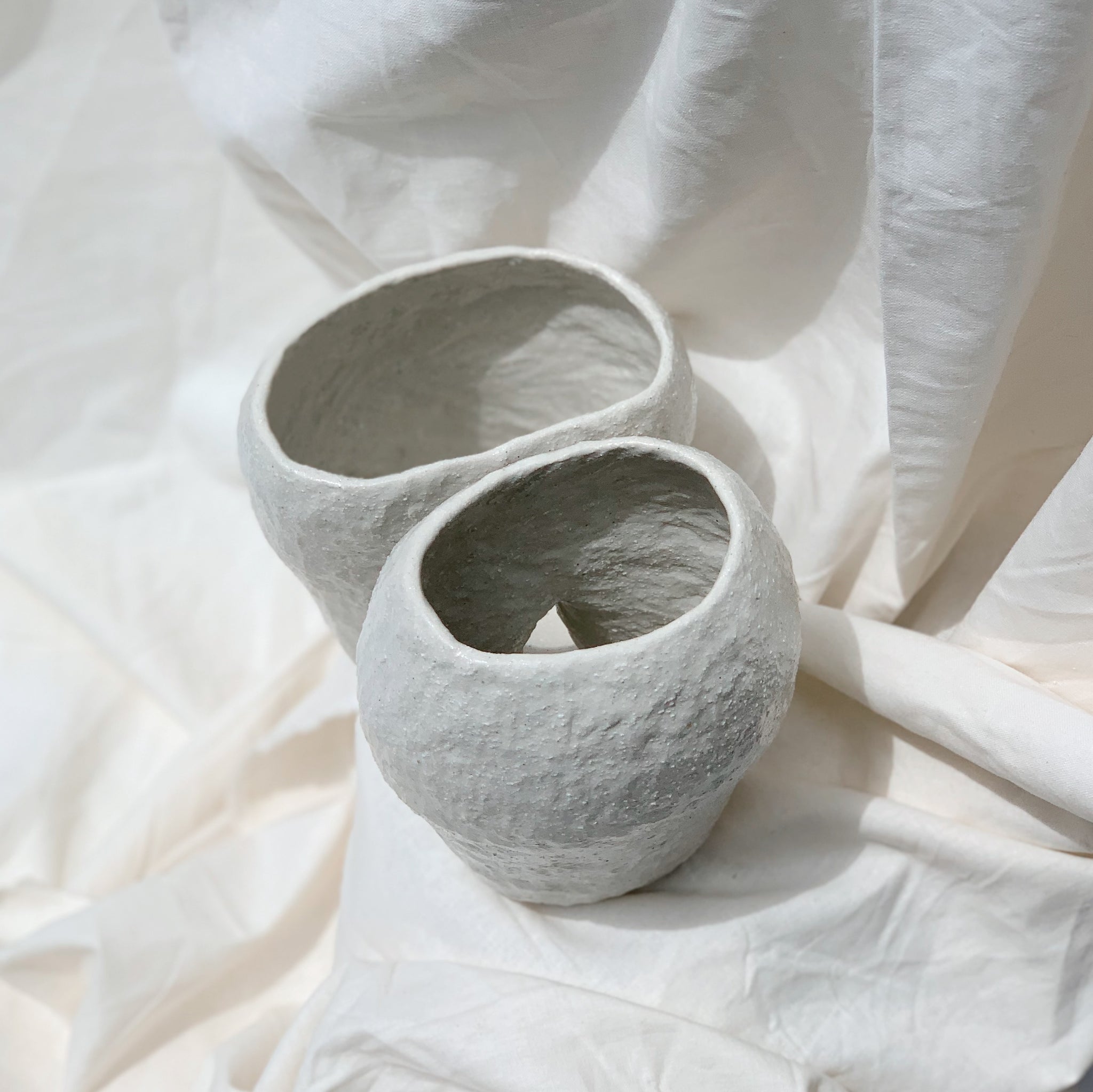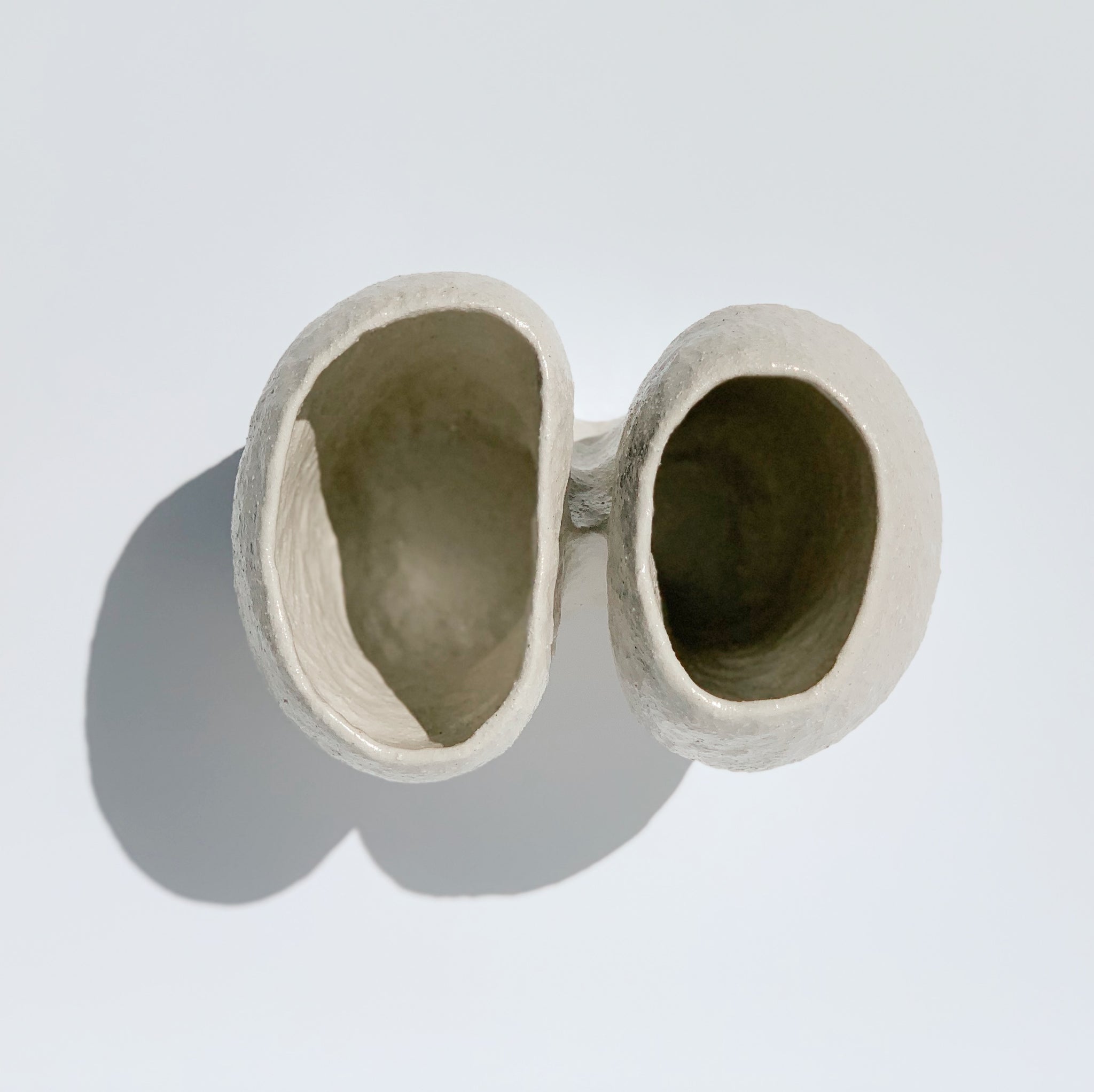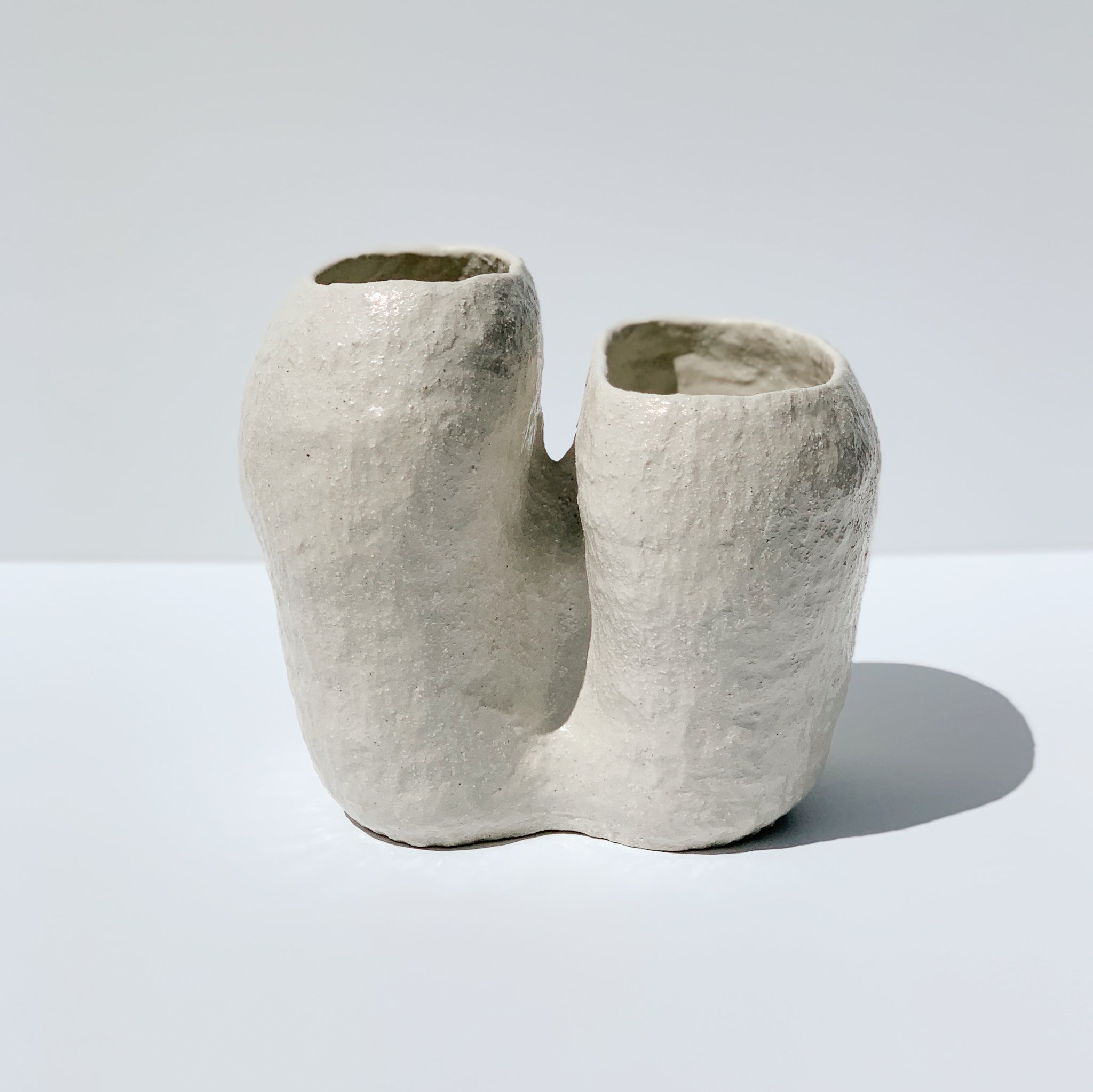 This Cunjevoi Vase has been created by hand from white textured stoneware clay. This vase has two chambers, connected by a hollow centre to allow water to be shared between both sides.